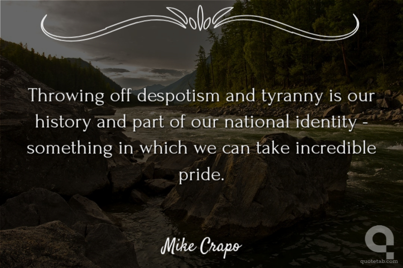 Throwing off despotism and tyranny is our history and part of our national identity - something in which we can take incredible pride. Mike Crapo