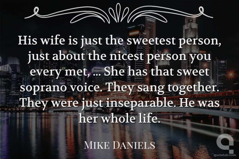 His wife is just the sweetest person, just about the nicest person you every met, ... She has that sweet soprano voice. They sang together. They were just inseparable. He was her whole life. Mike Daniels