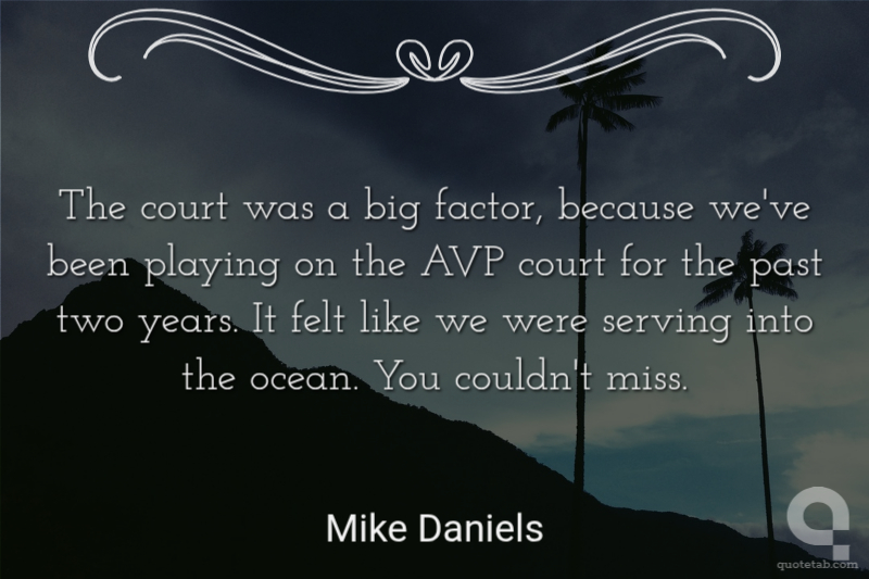The court was a big factor, because we've been playing on the AVP court for the past two years. It felt like we were serving into the ocean. You couldn't miss. Mike Daniels