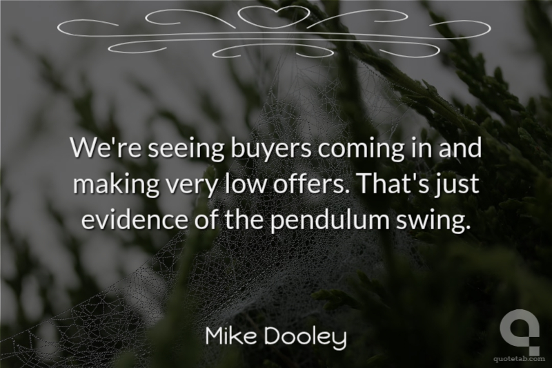 We're seeing buyers coming in and making very low offers. That's just evidence of the pendulum swing. Mike Dooley