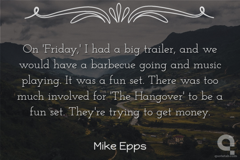 On 'Friday,' I had a big trailer, and we would have a barbecue going and music playing. It was a fun set. There was too much involved for 'The Hangover' to be a fun set. They're trying to get money. Mike Epps