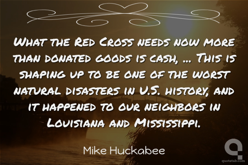 What the Red Cross needs now more than donated goods is cash, ... This is shaping up to be one of the worst natural disasters in U.S. history, and it happened to our neighbors in Louisiana and Mississippi. Mike Huckabee