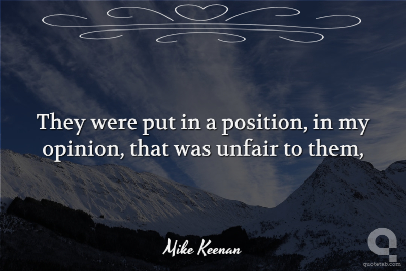 They were put in a position, in my opinion, that was unfair to them, Mike Keenan