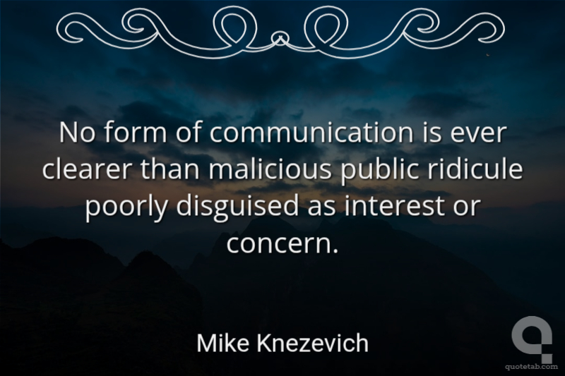 No form of communication is ever clearer than malicious public ridicule poorly disguised as interest or concern. Mike Knezevich