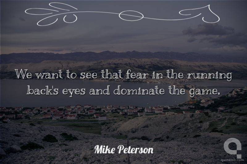 We want to see that fear in the running back's eyes and dominate the game, Mike Peterson