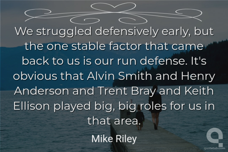 We struggled defensively early, but the one stable factor that came back to us is our run defense. It's obvious that Alvin Smith and Henry Anderson and Trent Bray and Keith Ellison played big, big roles for us in that area. Mike Riley