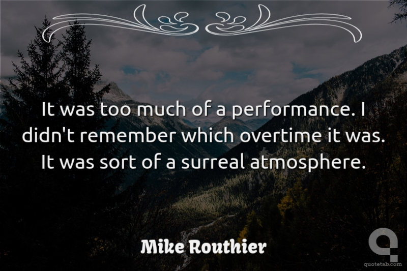 It was too much of a performance. I didn't remember which overtime it was. It was sort of a surreal atmosphere. Mike Routhier