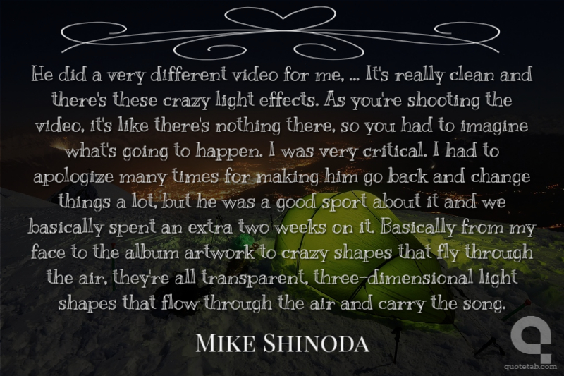 It is not as though the process of production holds any mystery for me, I know exactly what it involves and I know the predominant concern in shooting one of those things is production values - or as they would say, seeing it all up there on screen. Atom Egoyan
