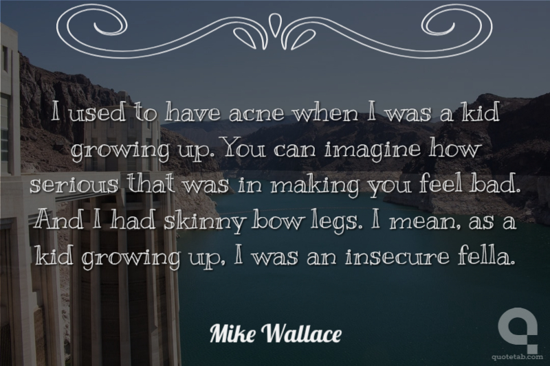 I used to have acne when I was a kid growing up. You can imagine how serious that was in making you feel bad. And I had skinny bow legs. I mean, as a kid growing up, I was an insecure fella. Mike Wallace