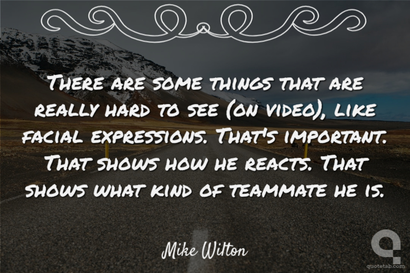 There are some things that are really hard to see (on video), like facial expressions. That's important. That shows how he reacts. That shows what kind of teammate he is. Mike Wilton