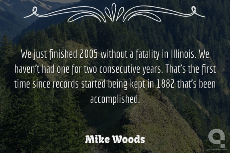 We just finished 2005 without a fatality in Illinois. We haven't had one for two consecutive years. That's the first time since records started being kept in 1882 that's been accomplished. Mike Woods