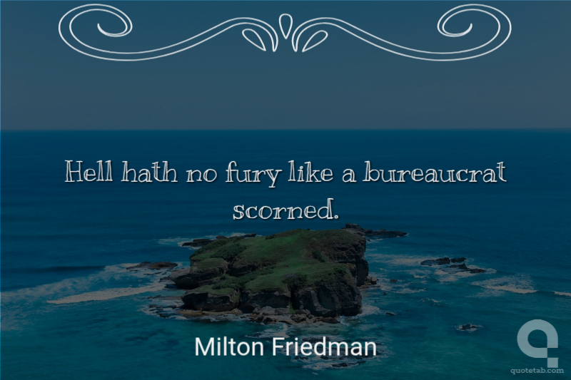 In this day and age, we need to revise the old saying to read, "Hell hath no fury like a bureaucrat scorned. Milton Friedman