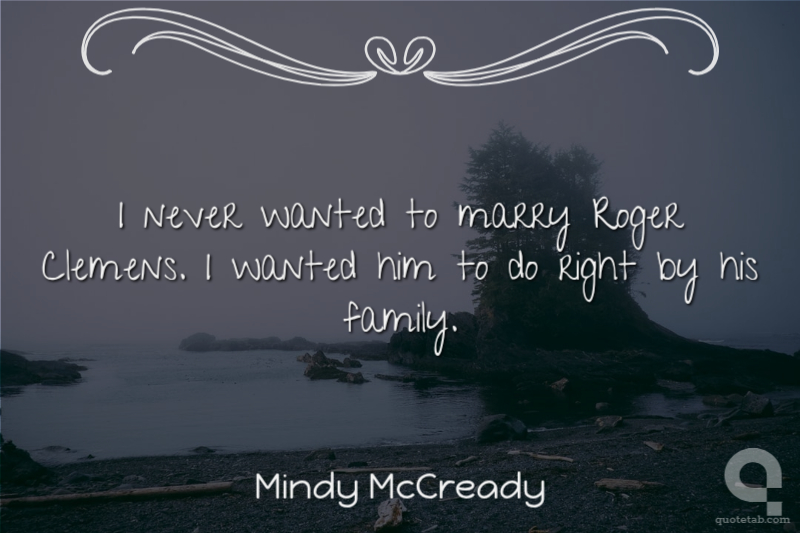 I never wanted to marry Roger Clemens. I wanted him to do right by his family. Mindy McCready