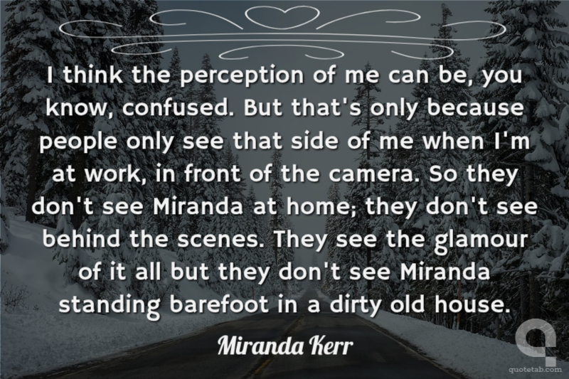 I think the perception of me can be, you know, confused. But that's only because people only see that side of me when I'm at work, in front of the camera. So they don't see Miranda at home; they don't see behind the scenes. They see the glamour of it all but they don't see Miranda standing barefoot in a dirty old house. Miranda Kerr