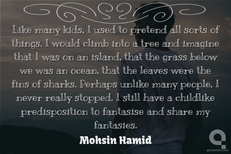 Like many kids, I used to pretend all sorts of things. I would climb into a tree and imagine that I was on an island, that the grass below we was an ocean, that the leaves were the fins of sharks. Perhaps unlike many people, I never really stopped. I still have a childlike predisposition to fantasise and share my fantasies. Mohsin Hamid