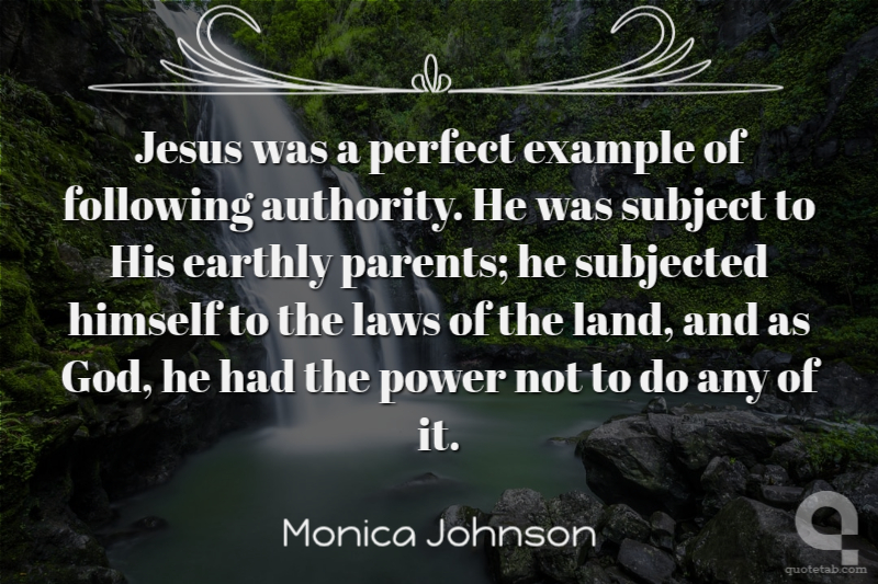 Jesus was a perfect example of following authority. He was subject to His earthly parents; he subjected himself to the laws of the land, and as God, he had the power not to do any of it. Monica Johnson