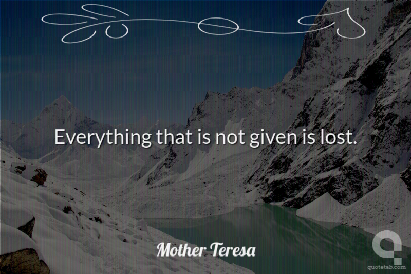 Everything that is not given is lost. Mother Teresa