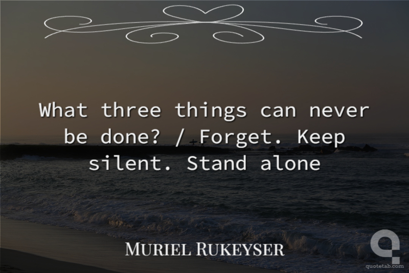 What three things can never be done? / Forget. Keep silent. Stand alone Muriel Rukeyser
