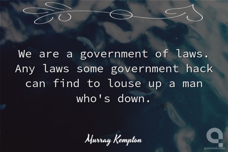 We are a government of laws. Any laws some government hack can find to louse up a man who's down. Murray Kempton