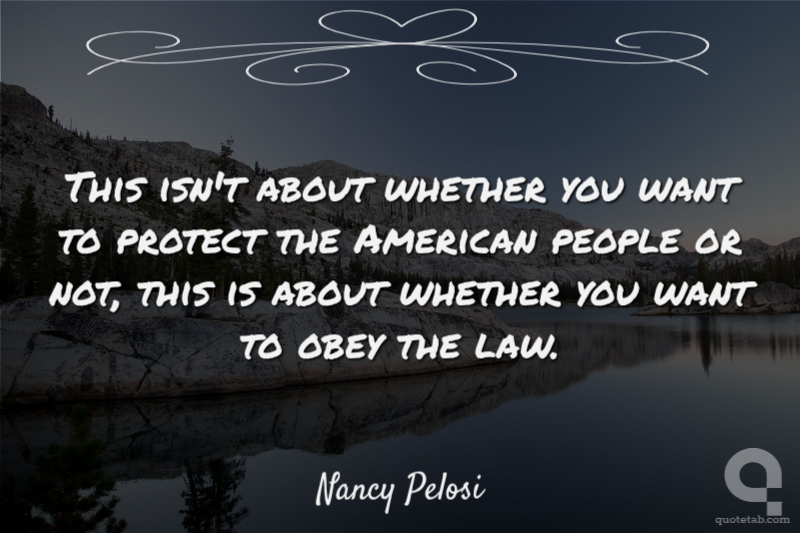 This isn't about whether you want to protect the American people or not, this is about whether you want to obey the law. Nancy Pelosi