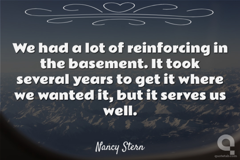 We had a lot of reinforcing in the basement. It took several years to get it where we wanted it, but it serves us well. Nancy Stern