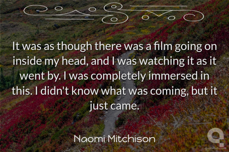It was as though there was a film going on inside my head, and I was watching it as it went by. I was completely immersed in this. I didn't know what was coming, but it just came. Naomi Mitchison