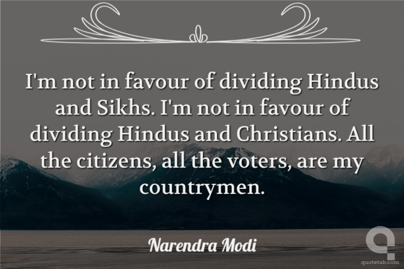 I'm not in favour of dividing Hindus and Sikhs. I'm not in favour of dividing Hindus and Christians. All the citizens, all the voters, are my countrymen. Narendra Modi