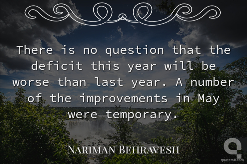 There is no question that the deficit this year will be worse than last year. A number of the improvements in May were temporary. Nariman Behravesh