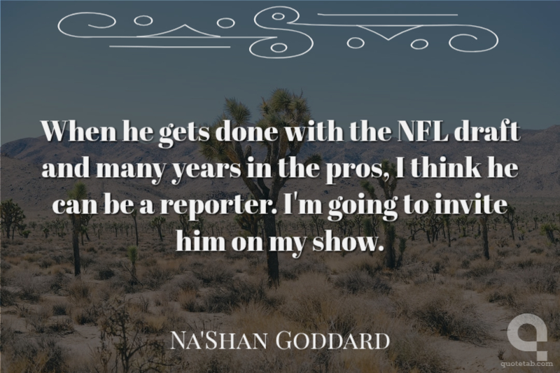 When he gets done with the NFL draft and many years in the pros, I think he can be a reporter. I'm going to invite him on my show. Na'Shan Goddard