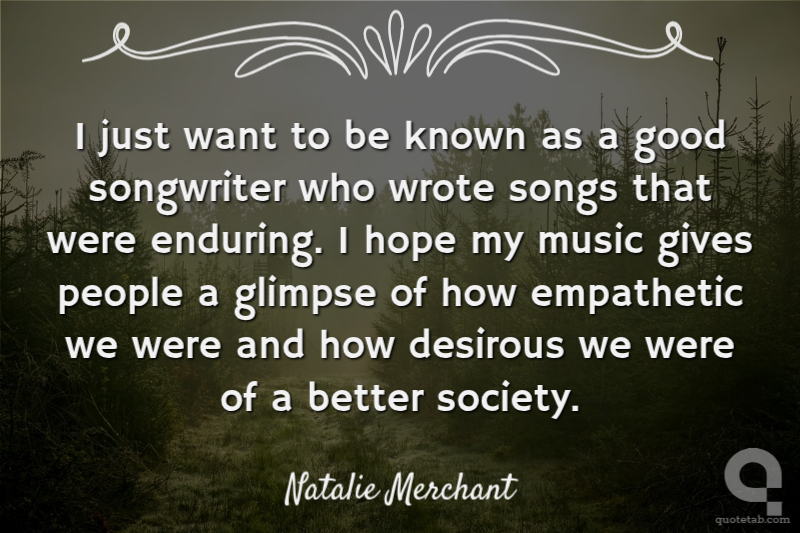 I just want to be known as a good songwriter who wrote songs that were enduring. I hope my music gives people a glimpse of how empathetic we were and how desirous we were of a better society. Natalie Merchant