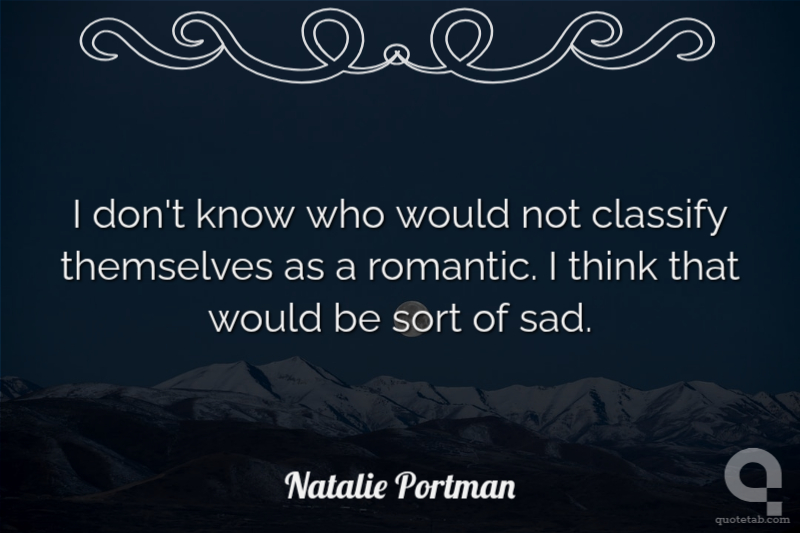 I don't know who would not classify themselves as a romantic. I think that would be sort of sad. Natalie Portman
