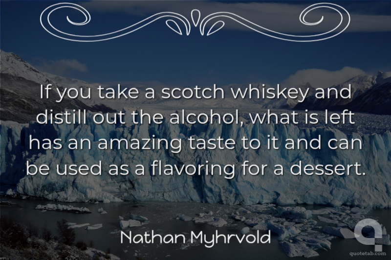 If you take a scotch whiskey and distill out the alcohol, what is left has an amazing taste to it and can be used as a flavoring for a dessert. Nathan Myhrvold