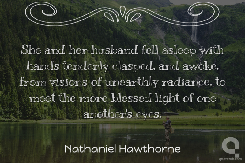 She and her husband fell asleep with hands tenderly clasped, and awoke, from visions of unearthly radiance, to meet the more blessed light of one another's eyes. Nathaniel Hawthorne