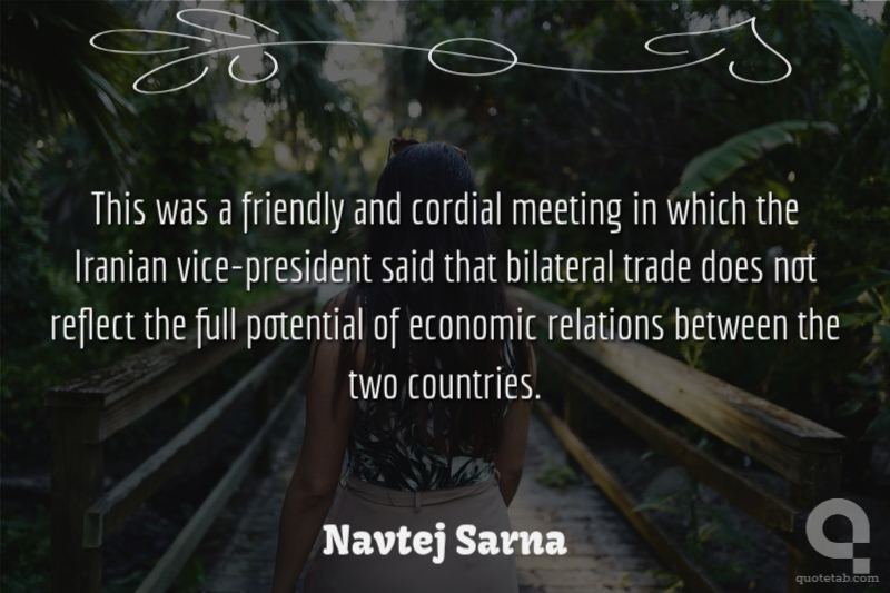 This was a friendly and cordial meeting in which the Iranian vice-president said that bilateral trade does not reflect the full potential of economic relations between the two countries. Navtej Sarna