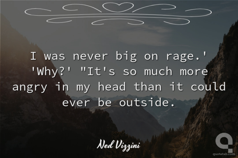 I was never big on rage.' 'Why?' "It's so much more angry in my head than it could ever be outside. Ned Vizzini