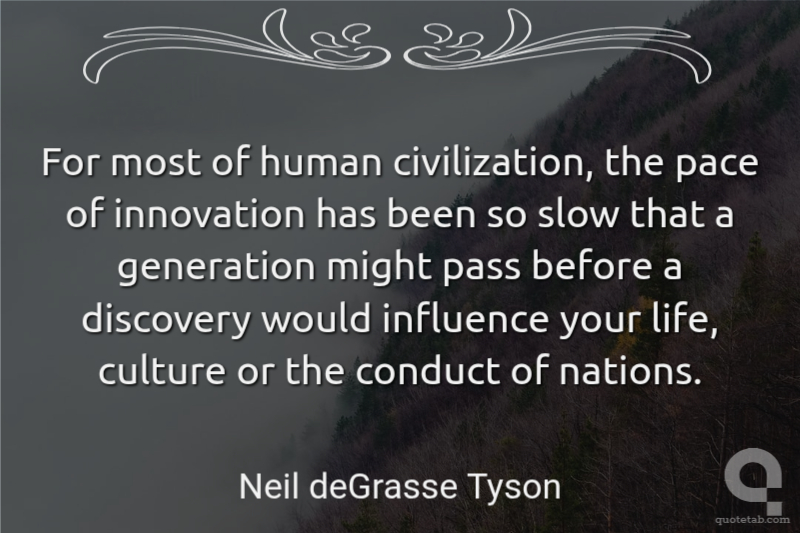 For most of human civilization, the pace of innovation has been so slow that a generation might pass before a discovery would influence your life, culture or the conduct of nations. Neil deGrasse Tyson