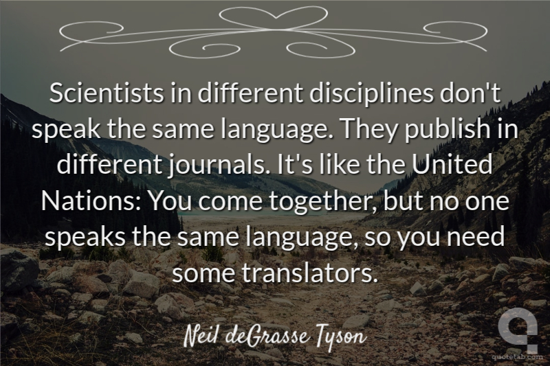 Scientists in different disciplines don't speak the same language. They publish in different journals. It's like the United Nations: You come together, but no one speaks the same language, so you need some translators. Neil deGrasse Tyson