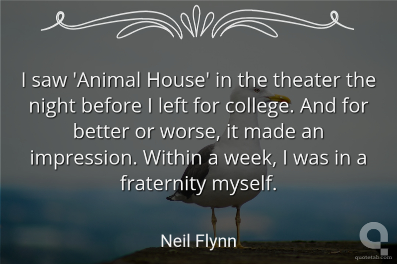I saw 'Animal House' in the theater the night before I left for college. And for better or worse, it made an impression. Within a week, I was in a fraternity myself. Neil Flynn