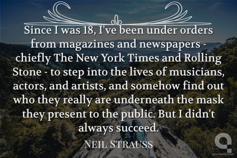 Since I was 18, I've been under orders from magazines and newspapers - chiefly The New York Times and Rolling Stone - to step into the lives of musicians, actors, and artists, and somehow find out who they really are underneath the mask they present to the public. But I didn't always succeed. Neil Strauss