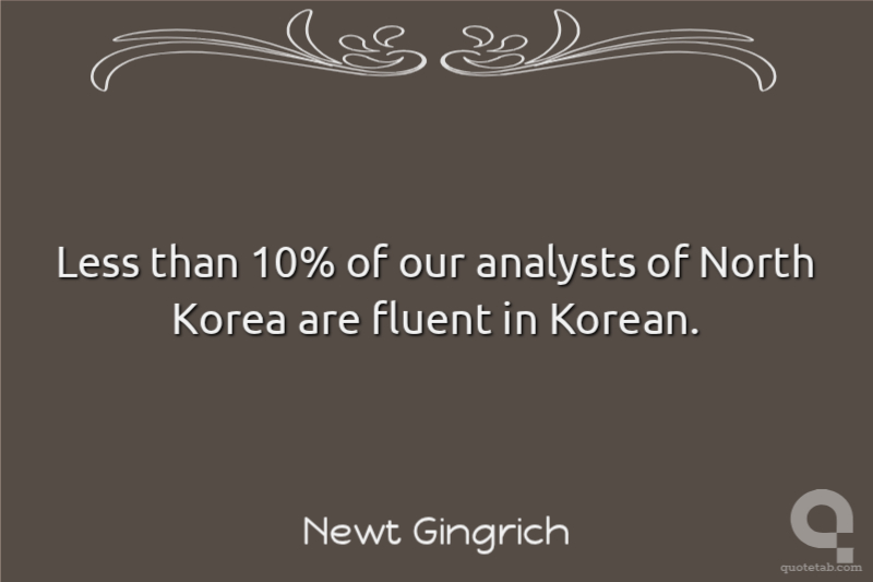 Less than 10% of our analysts of North Korea are fluent in Korean. Newt Gingrich