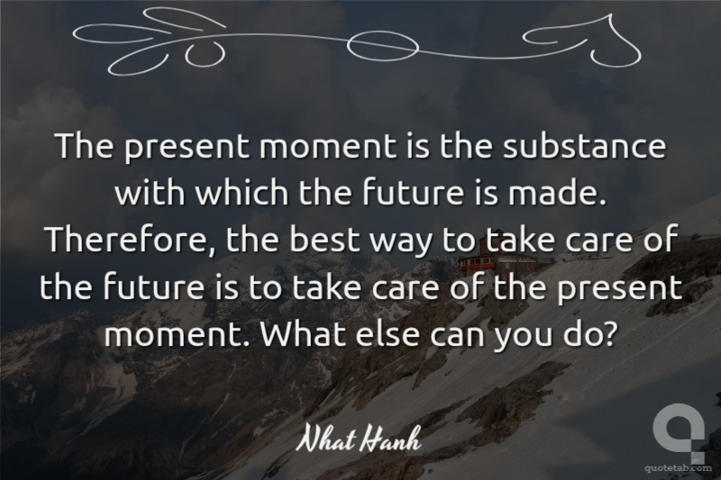 The present moment is the substance with which the future is made. Therefore, the best way to take care of the future is to take care of the present moment. What else can you do? Nhat Hanh