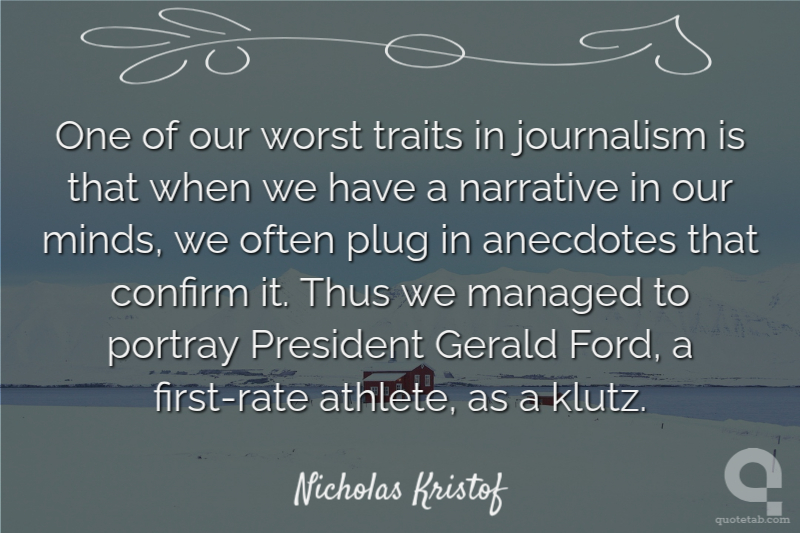 One of our worst traits in journalism is that when we have a narrative in our minds, we often plug in anecdotes that confirm it. Thus we managed to portray President Gerald Ford, a first-rate athlete, as a klutz. Nicholas Kristof