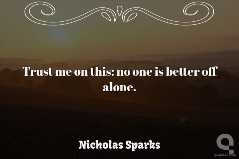 Trust me on this: no one is better off alone. Nicholas Sparks