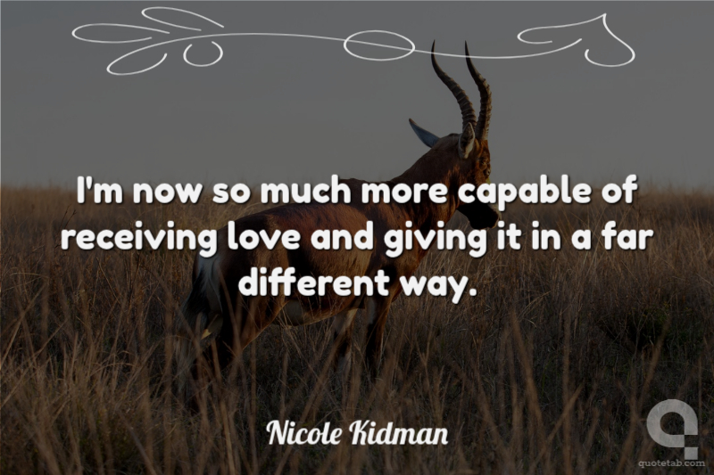 I'm now so much more capable of receiving love and giving it in a far different way. Nicole Kidman