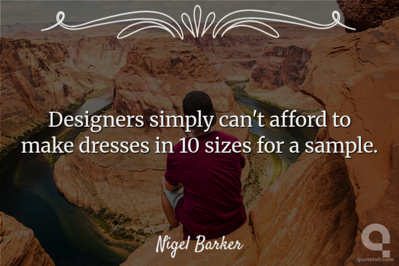 Designers simply can't afford to make dresses in 10 sizes for a sample. Nigel Barker