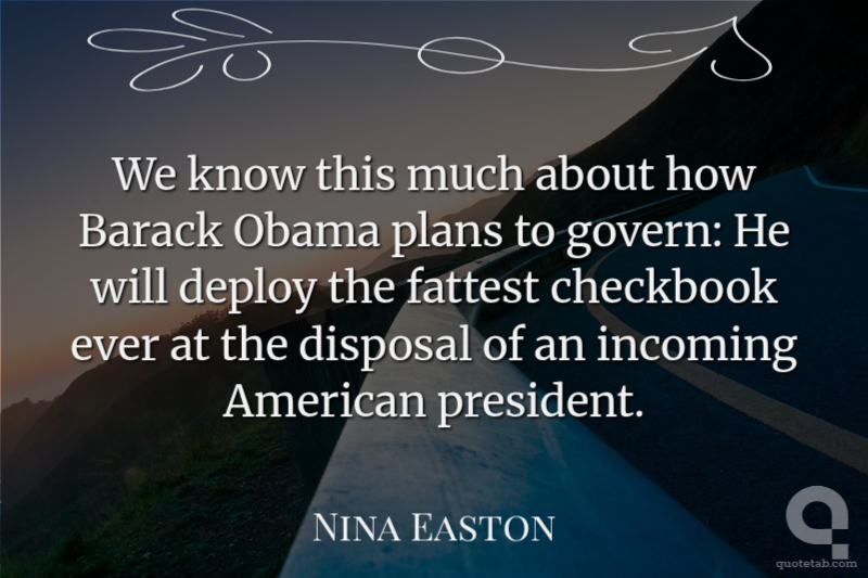 We know this much about how Barack Obama plans to govern: He will deploy the fattest checkbook ever at the disposal of an incoming American president. Nina Easton