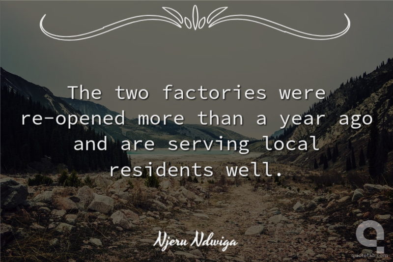 The two factories were re-opened more than a year ago and are serving local residents well. Njeru Ndwiga