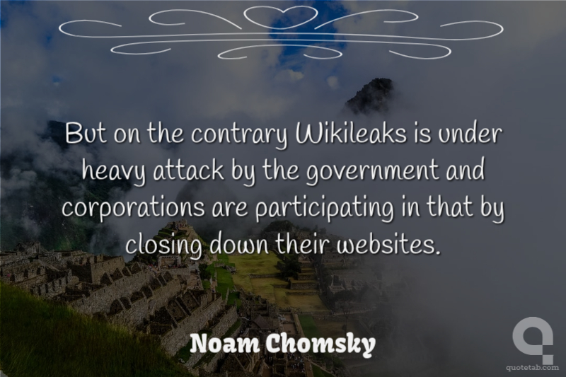 Noam Chomsky But on the contrary Wikileaks is under heavy attack by the government and corporations are participating in that by closing down their websites.