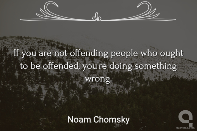 If you are not offending people who ought to be offended, you're doing something wrong. Noam Chomsky