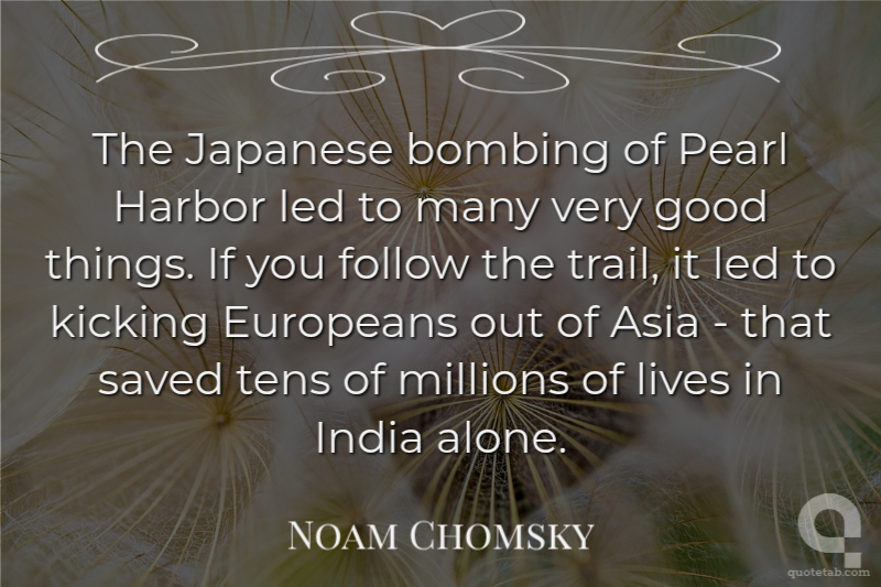 The Japanese bombing of Pearl Harbor led to many very good things. If you follow the trail, it led to kicking Europeans out of Asia - that saved tens of millions of lives in India alone. Noam Chomsky